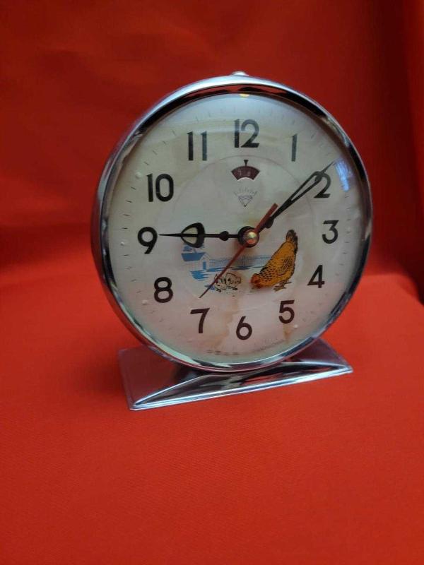 ANTİKA YEM YİYEN TAVUKLU KURMALI MASA SAATİ. çalışıyor