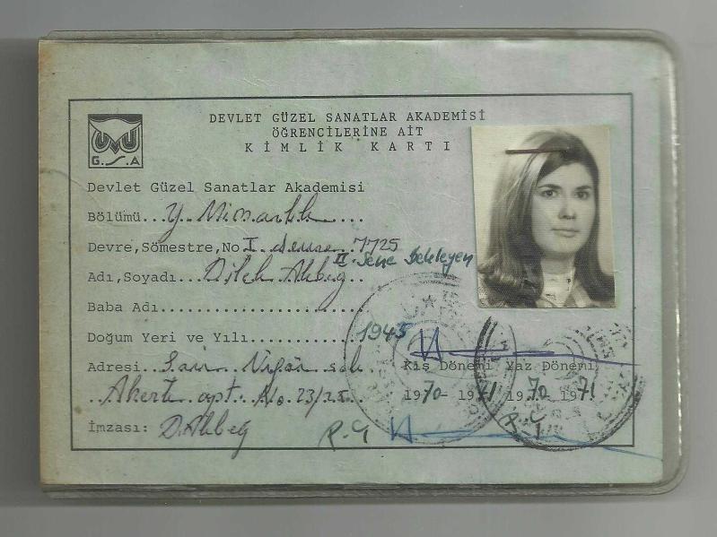 ATATÜRK RESİMLİ 1970 DEVLET GÜZEL SANATLAR AKADEMİSİ KİMLİK KARTI...