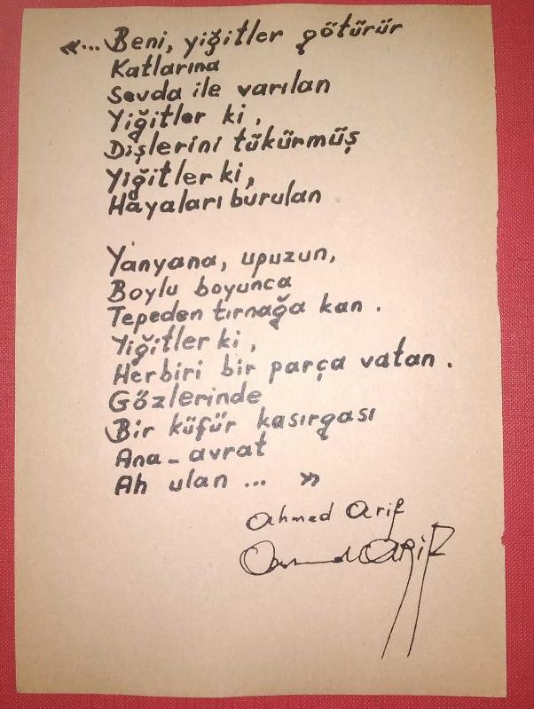 Ahmed Arif - el yazısı şiir - Kalbim Dinamit Kuyusu (Tıpkıbasım)