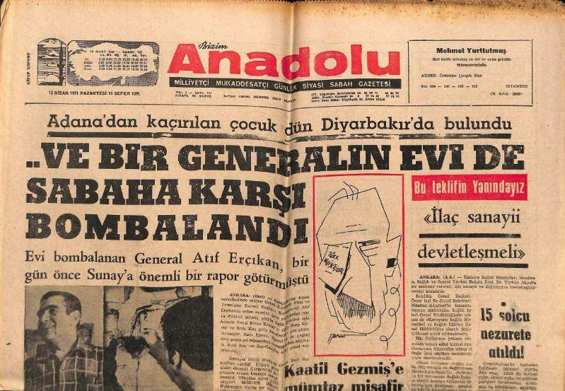 Anadolu Gazetesi 12 Nisan 1971 - General Atıf Erçıkan'ın Evi Bombalandı GZ66638