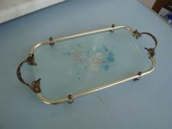 Metal (prinç) Çerçeveli Cam Tepsi (El işçiliği boyama)