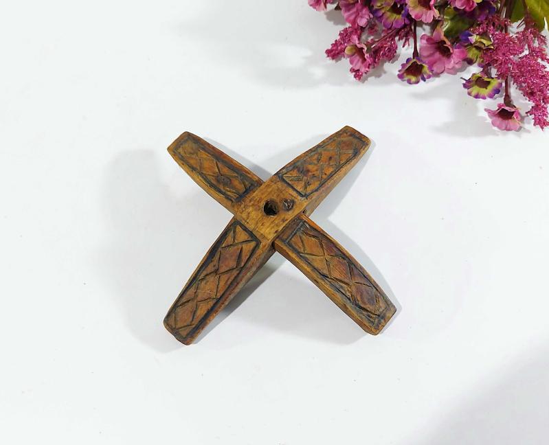 Antika Kirman - Ahşap Yün Eğirme Aleti - Kirman Ucu İp Eğirme Aleti - Eski İşlemeli Kirman