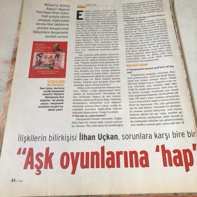 Aşk oyunlarına hap çözümler sunuyorum ilhan uçkan haber sayfası 14*20 ebat