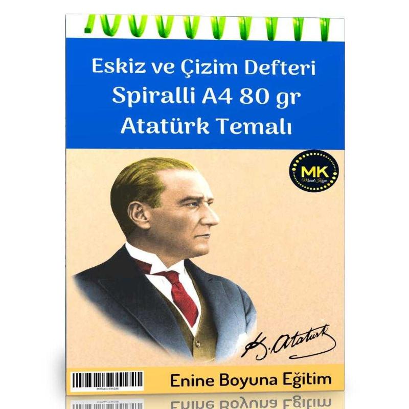 Atatürk Temalı Eskiz ve Çizim Defteri Kraft Spiralli 100 Sayfa A4 80 gr