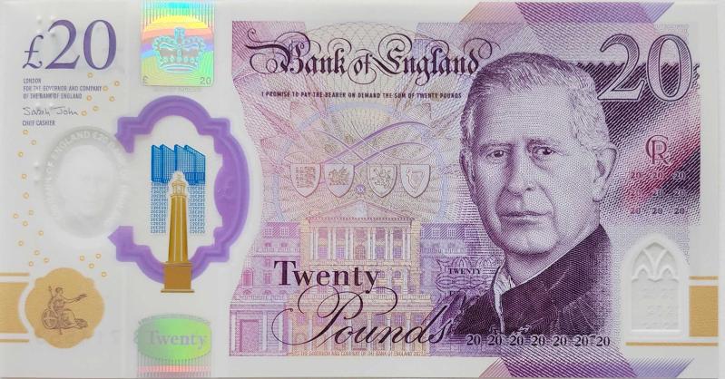 BÜYÜK BRİTANYA 20 POUND 2024 POLİMER PARA. YENİ KRAL CHARLES BÜSTLÜ. İNGİLTERE. ÇİL KONDİSYON.
