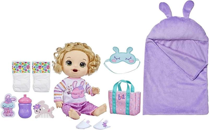 Baby Alive Bunny Sleepover Baby Doll, Bedtime-Themed 12-Inch Dolls, Sleeping Bag & Bunny-Themed Doll Accessories, Toys for 3 Year Old Girls and Boys and Up, Blonde Hair (Amazon Exclusive)