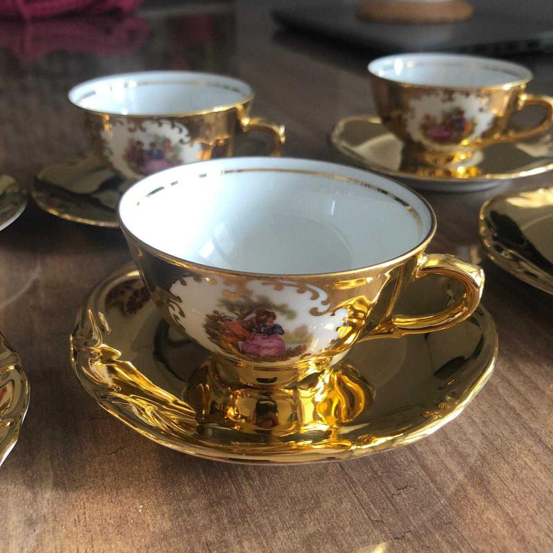 BAVARİAU FİNE QUALİTY JAPAN STYLE A.T.C DAMGALI KABE RESİMLİ Porselen Fincan Takımı 12 PARÇA AYAKLI ALTIN RENGİ VERMİYELİ