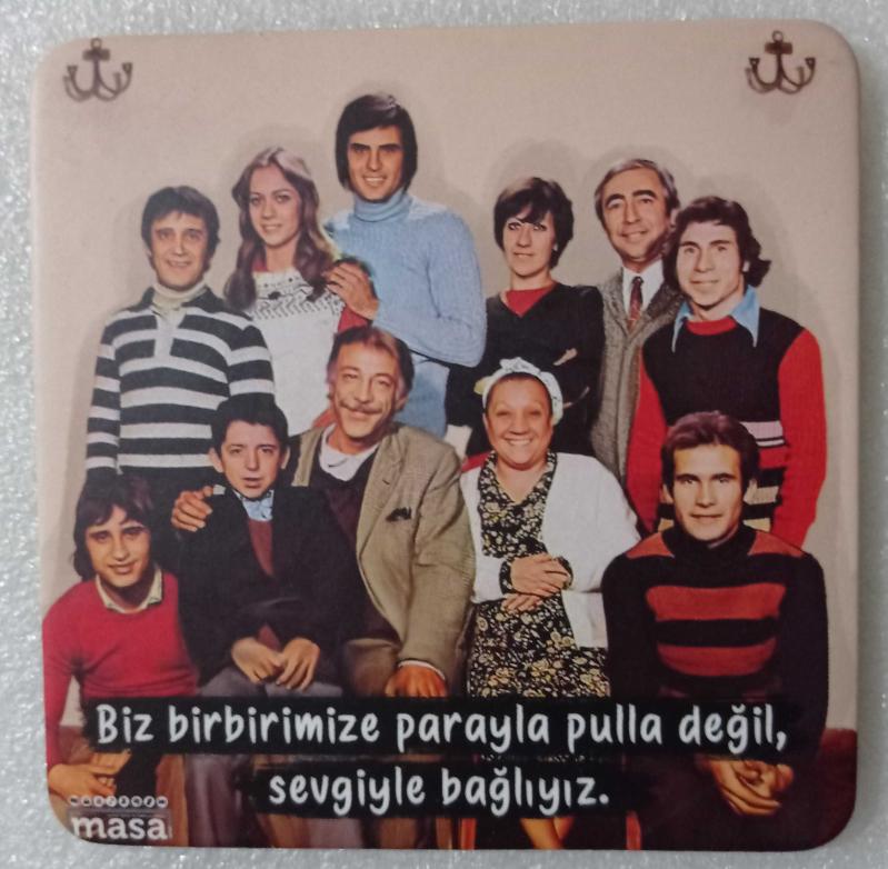 Bizim aile ( Münir Özkul * Adile Naşit * Tarık Akan * Şener Şen * Halit Akçatepe * Ayşen Gruda ) = Masa dergisi bardak altlığı ~ [ ÇİFT TARAFLI ]