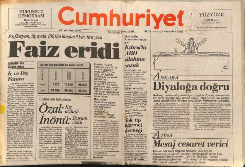 Cumhuriyet Gazetesi 3 Nisan 1987 - Talat Paşa Konağı Onarılıyor GZ74712