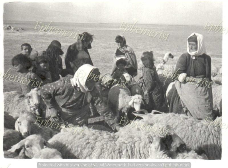 Davar sürüsü arasında, muhtemelen Doğu Anadolu'dan kadın ve çocuklar. Orijinal. Enstantane Fotoğraf. 1930/40