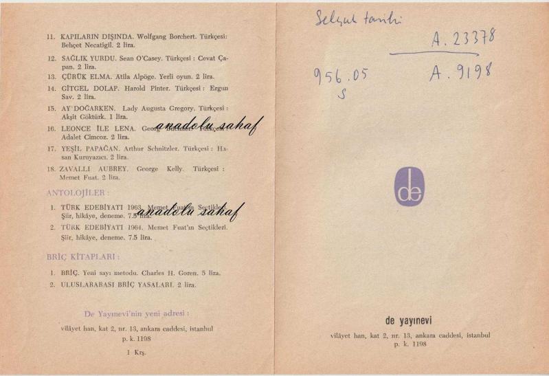 Düşün Yayınevi 1959 - 1960 Kitap Listesi