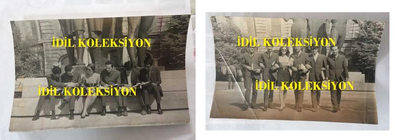 EFSANE MÜZİK GRUBU BEYAZ KELEBEKLER'İN ÇOK NADİR İKİLİ ORİJİNAL FOTOĞRAF SETİ, 18 x 12 cm EBADINDA, SİYAH & BEYAZ - GRUP ÜYELERİ İSTANBUL ÜNİVERSİTESİ BEYAZIT KAMPÜSÜ İÇ YERLEŞKESİNDE DEKANLIK BİNASINDA GENÇLİK ANITI ÖNÜNDE POZ VERİRKEN - 1960'LARDAN BİR HATIRA, RIFAT EKE, ALTAN EKE, BEHZAT KUTLU, ENDER AKACAN