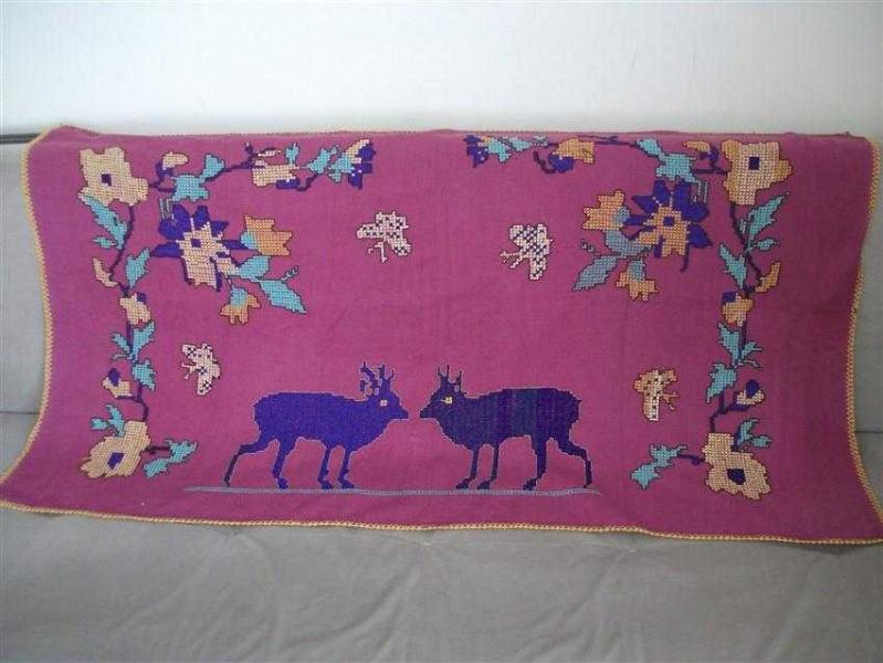 ETAMİN ÜZERİNE KANAVİÇE İŞLEMELİ - HARİKA BİR PANO - ÇİFT GEYİK MOTİFİ - 82X145 CM