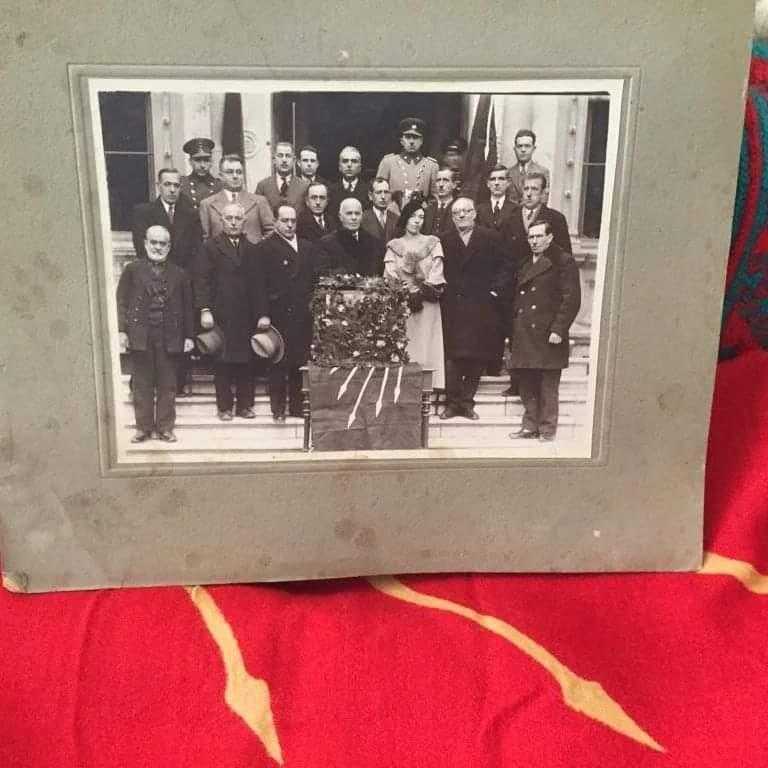 Edirne Belediyesi Önünde Cumhuriyet Halk Fırkası 1935 Milletvekili adayları Dr. Fatma Memik, Trakya Paşaeli Cemiyeti kurucularından Mehmet Şeref Aykut ve Faik Kaltakkıran ile Edirneliler toplu halde. CH. Fırkası dönemin örme bayrağı ile fotoğraf 1935 yılından beri itina ile korunmuş, dönemine göre kusursuzdur.