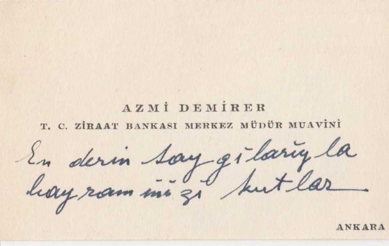 FİNANS TARİHİ - AZMİ DEMİRER - ZİRAAT BANKASI MERKEZ MÜDÜR MUAVİNİ - ANKARA - KARTVİZİT