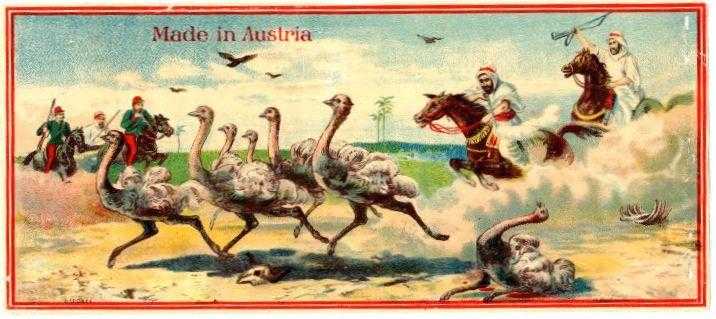 Fes Etiketi, C-14e, Devekuşu Avı, SAFABT, Vi ,110x251 mm, Kondisyon 9,5-10, Gerçek=Orijinal