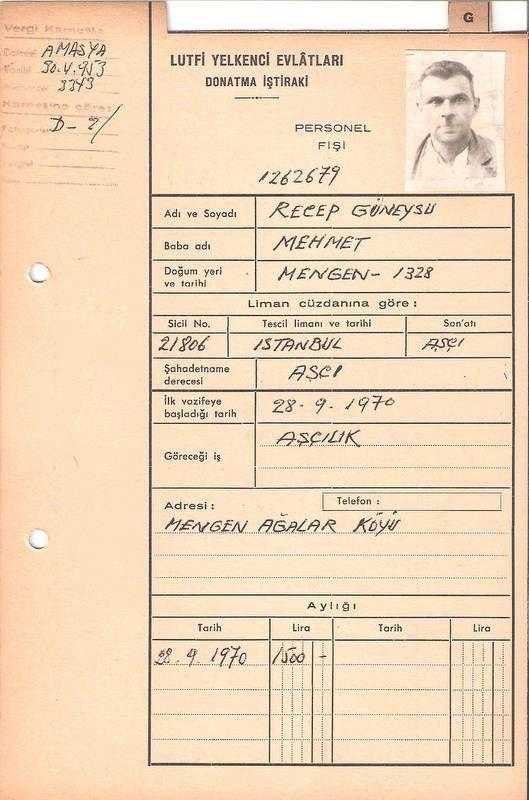 GEMİCİ PERSONEL FİŞİ/ RECEP GÜNEYSU