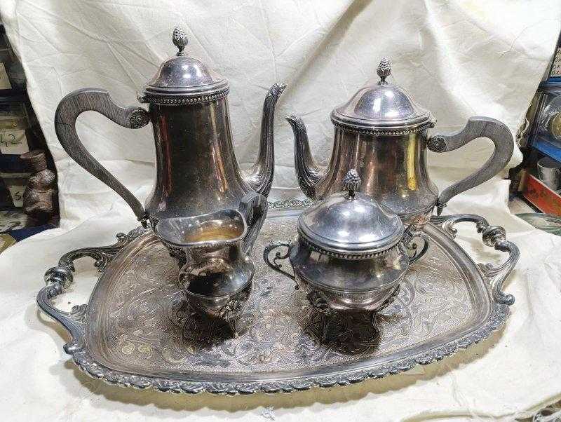Christofle damgalı gümüş kaplama, 4+1 çay seti.