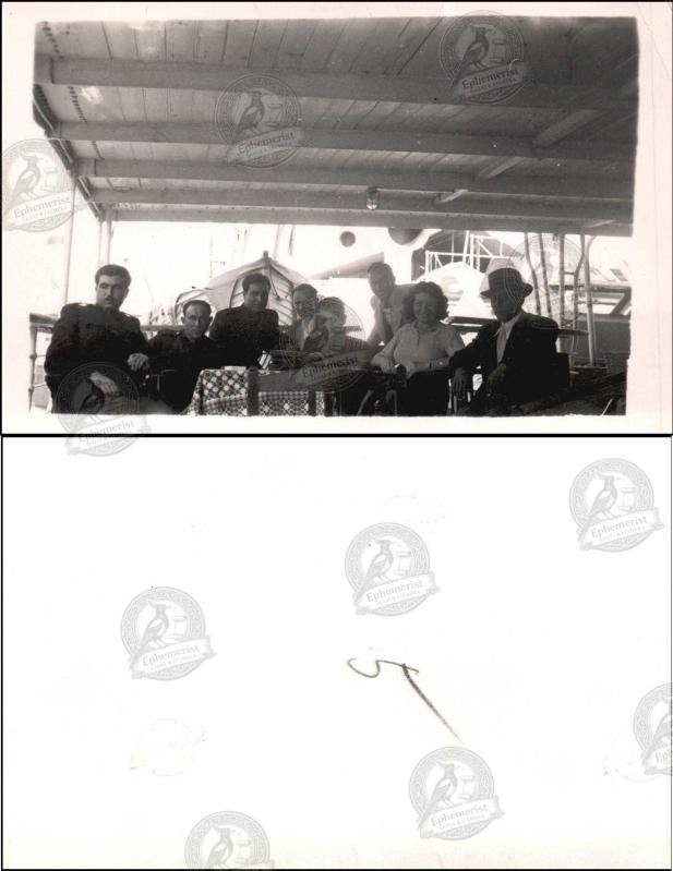 Gemi Güvertesi, Grup, Fotoğraf, 1940’lar: Oturur halde poz veren kadın ve erkeklerden oluşan kalabalık grup, arka planda gemi yapısı