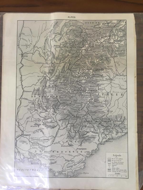 Harita Alpes (Alpler) İtalya, Lyon 1928 25x32 cm