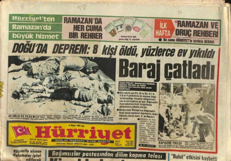 Hürriyet Gazetesi 6 Mayıs 1986 - Doğuda Deprem 8 Kişi Öldü , Yüzlerce Ev Yıkıldı GZ91736