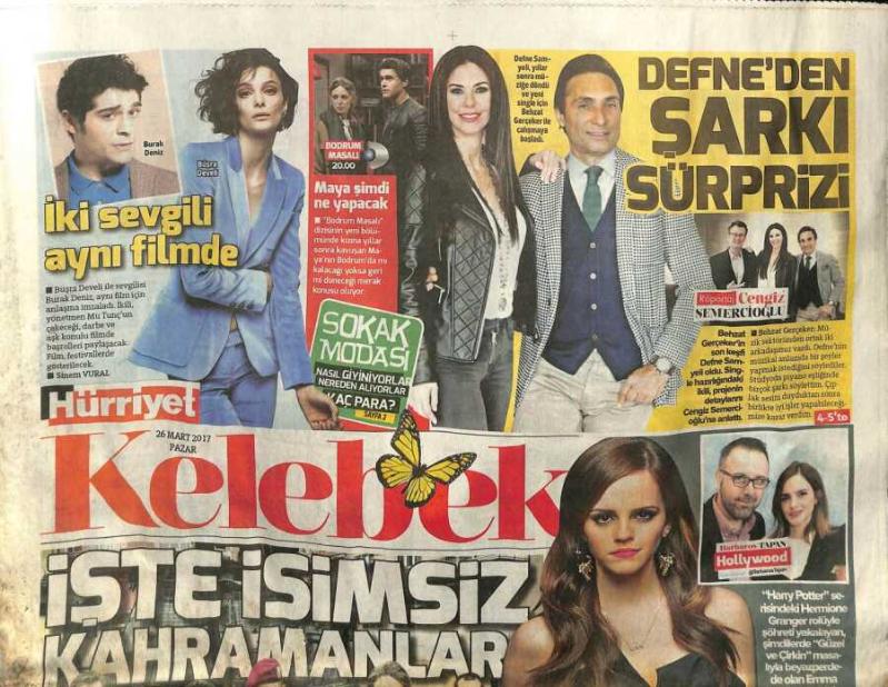 Hürriyet Gazetesi Kelebek Eki 26 Mart 2017 - Defne Samyeli , Yıllar Sonra Behzat Gerçeker İle Çalışmaya Başladı GZ100022