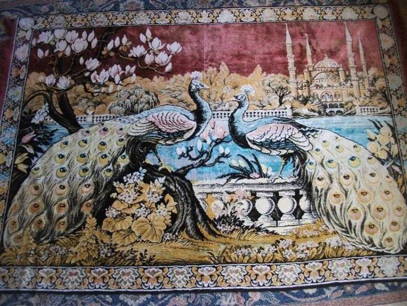 İPEK KADİFE - ÇİFT TAVUS KUŞLU DUVAR HALISI - 118X170 CM