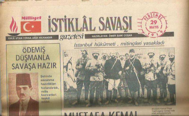 İSTİKLAL SAVAŞI GAZETESİ - 29 MAYIS 1919 - MUSTAFA KEMAL : MİTİNGLER DEVAM EDECEK- (TIPKI BASIM)