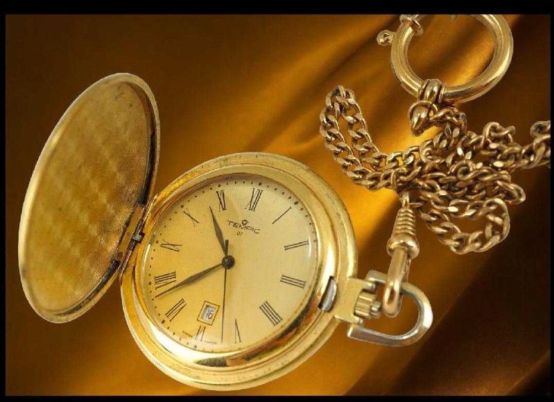İsveç Tempic köstekli takvimli altın kaplama saat otomatik