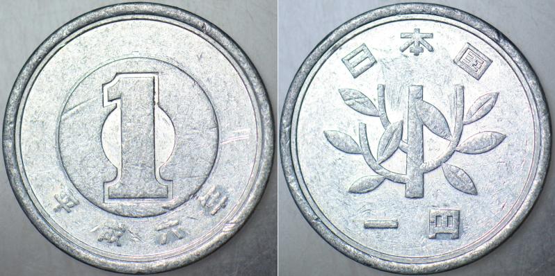 JAPONYA 1 YEN 1994. İMPARATOR AKİHİTO (Heisei) DÖNEMİ. 20 mm ÇAPINDA ALÜMİNYUM PARA.