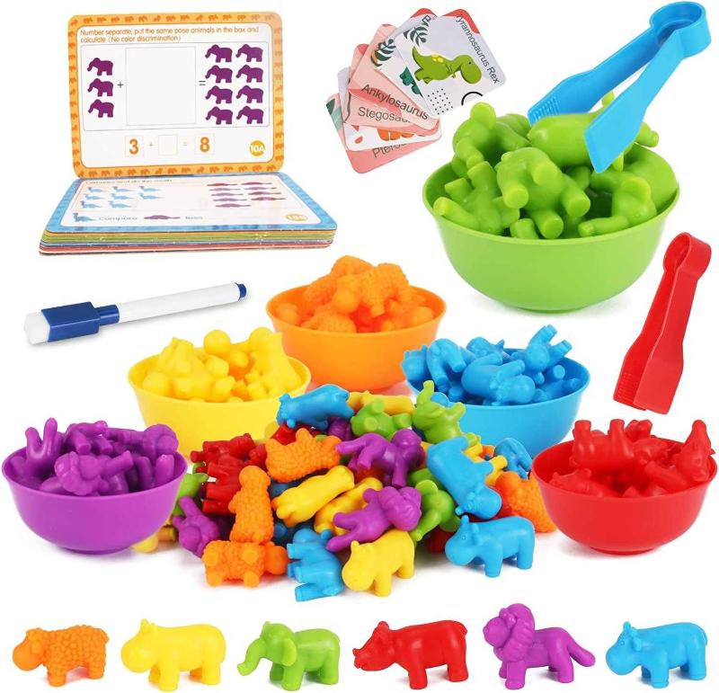 JUXUE Counting Animals Color Sorting Toys for Toddlers 1-3, Montessori Fine Motor Skills Toys for 4-5 Years Old Boys Girls Gifts, Counting Bears Preschool Learning Activities Matching Game Kids Math