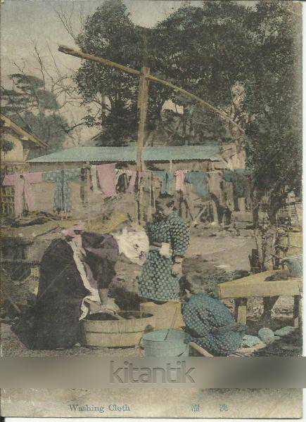 Japon Etnoğrafik Eski Orijinal Kartpostal: Pounding rice for Rice cake