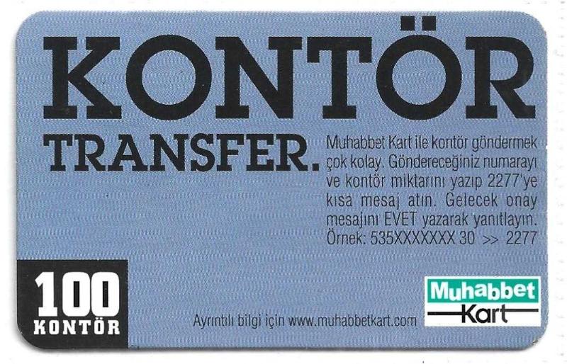K = TURKCELL HAZIR KART ( KONTÖR TRANSFER ) 100 KONTÖR - TEMİZ ve NADİR