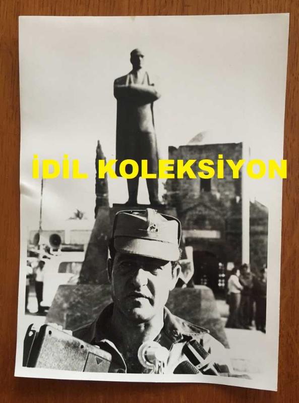 KIBRIS BARIŞ HAREKATI'NIN ORİJİNAL AJANS-BASIN FOTOĞRAFI - 18 x 13 cm EBADINDA - KIBRIS BARIŞ HAREKATI SONRASINDA GÜNEY'DEKİ TÜRKLERİN GÖÇ ETMEYE BAŞLADIKLARI SÜREÇTE GEÇİT TÖRENİNDEN BİR KARE, ATATÜRK ANITI ÖNÜNDE BİR TÜRK SUBAYI, 1975