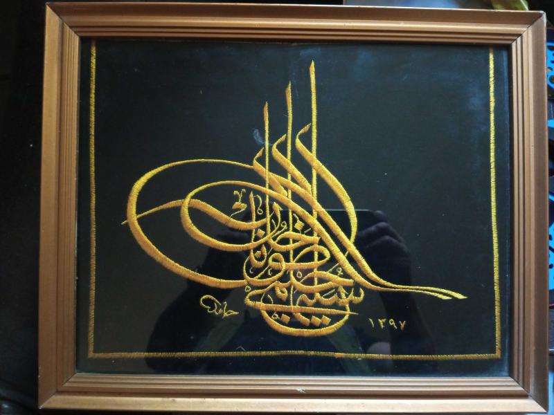 Kadife üzerine tel kırma ile işlenmiş tuğra 30*35