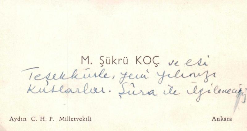 [Kartvizit] Aydın C.H.P. Milletvekili M. Şükrü Koç'a Ait, Arkası Yazılı