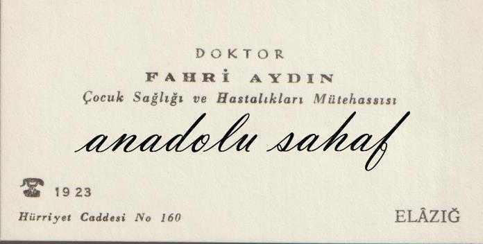 Kartvizit: Doktor Fahri Aydın - Çocuk Sağlığı ve Hastalıkları Mütehassısı, Elazığ