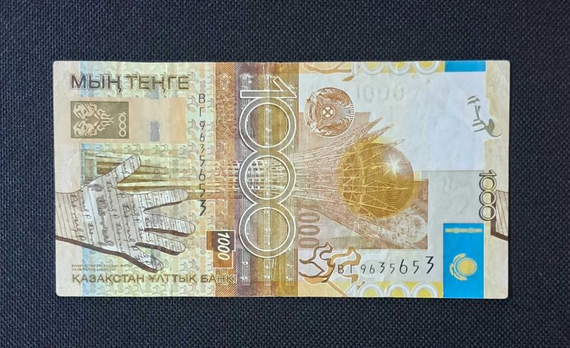 KAZAKİSTAN 1000 TENGE 2014 ALT KENARDA YARIM CM YIRTIK ÇT.