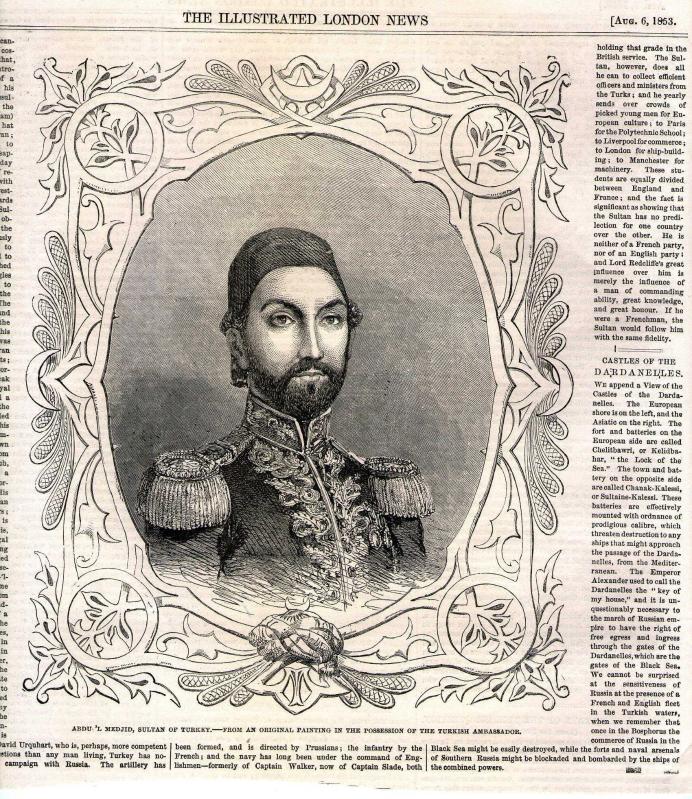 L'ILLUSTRATION,19.yy OSMANLI GRAVÜRÜ .ORİJİNAL DERGİ BASKISI.1853 AĞU.SULTAN 1. ABDÜLMECİD 28X26CM