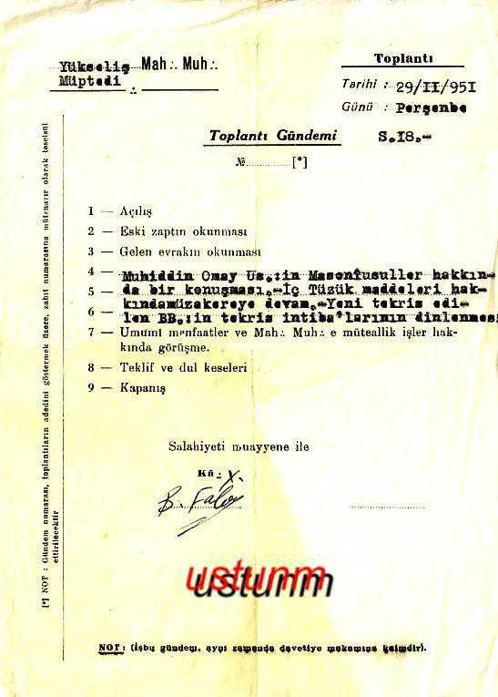 MASON YÜKSELİŞ LOCASI,1951 TARİHLİ DAVETİYE.....