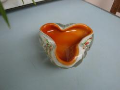 İtalyan murano cam küllük el işi imalat kehribar renkli iri boyda