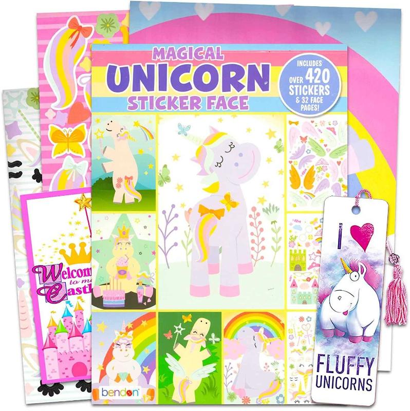 Make a Face Unicorn Sticker Books for Boys Girls Kids Toddlers - Bundle with Unicorn Sticker Activity Books with 32 Pages and 420+ Stickers Featuring Magical Unicorns Plus Bookmark, More | Sticker Face Activity Set.