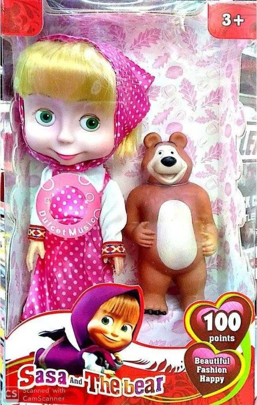 Maşa İle Koca Ayı Oyuncak Bebek 2li Sesli Figür Masha İle Koca Ayı Karakter Oyuncak