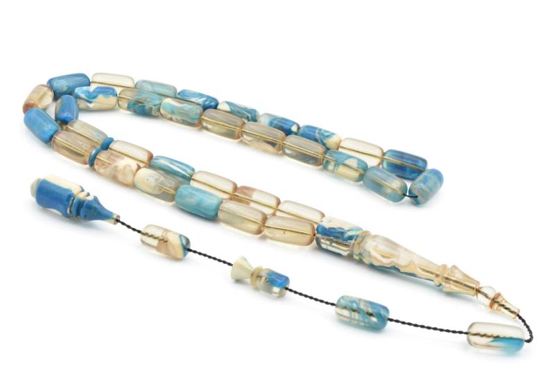Mehmet Hızarcı Usta İşçilikli Şeffaf Mavi Sıkma Kehribar Tesbih