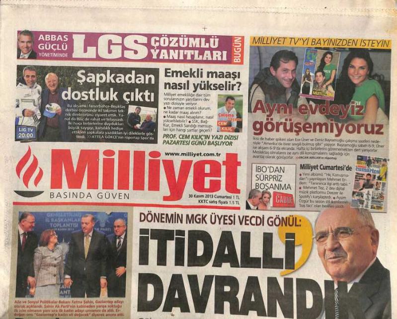 Milliyet Gazetesi 30 Kasım 2013 - Emine Erdoğan Suç Duyurusu Yaptı - Emekli Maaşı Nasıl Yükselir ? GZ115809
