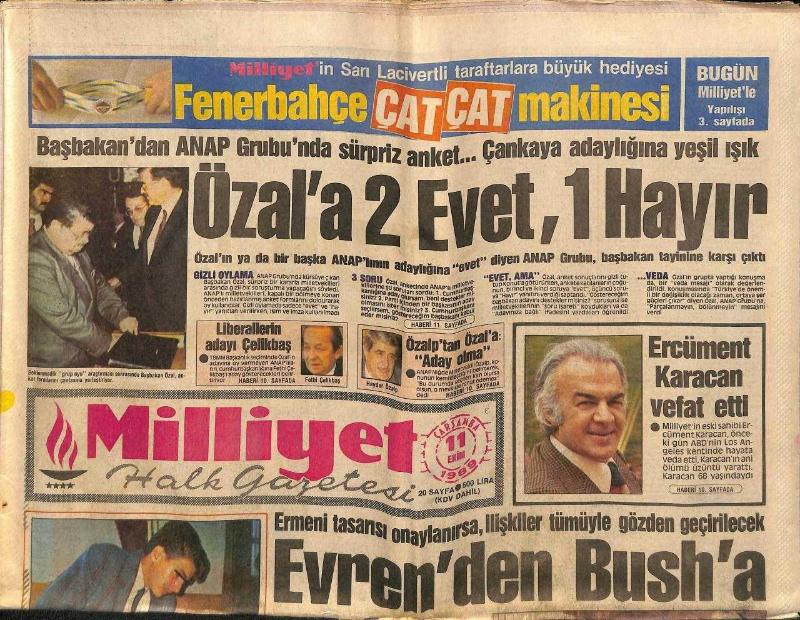 Milliyet Halk Gazetesi 11 Ekim 1989 - Ercüment Karacan Vefat Etti GZ76666