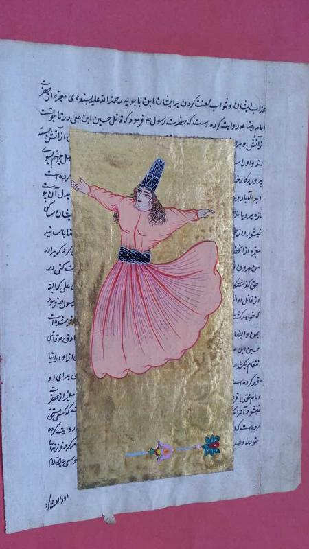 Minyatür : Eski El Yazma Yaprağına Kadın Mevlevi Semazen Minyatürü