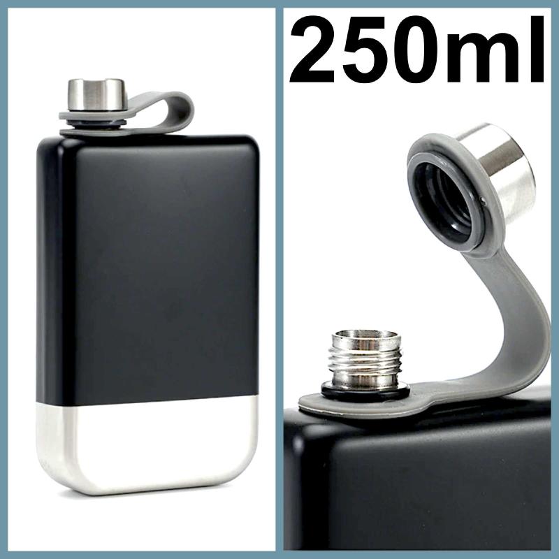 OMENİV'DEN 304 ÇELİK SİYAH MATARA 250ML TERMOS İÇKİ VOTKA VİSKİ ŞİŞESİ ŞARAP ŞİŞE TEK