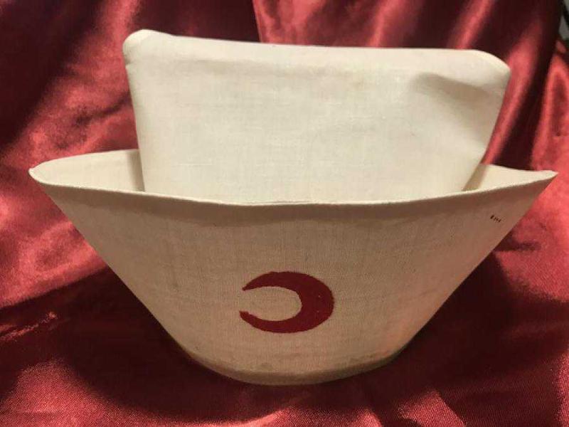 OSMANLI HİLALİAHMER BEYAZ ÜZERİ KIRMIZI HİLAL EL DİKİM BAŞ HEMŞİRE KEPİ