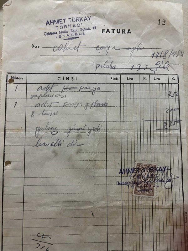 OTOMOBİL TAMİRAT FATURASI - 17 AĞUSTOS 1954 - AHMET TÜRKAY - TORNACI - ŞİLE, ÜSKÜDAR, İSTANBUL- AHMET ÇAYIROĞLU - ISLAK İMZALI, KAŞELİ DAMGA PULU - 17 x 27 cm EBATLI ORİJİNAL FATURA
